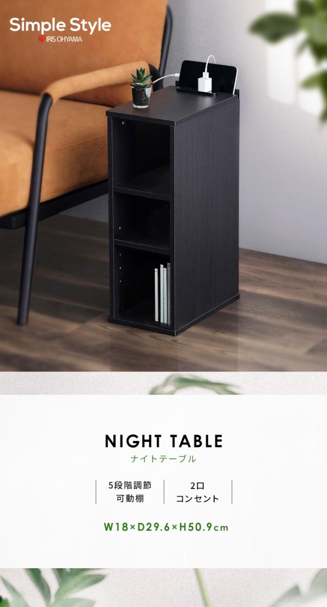 ★クーポンあり★ ナイトテーブル棚付き NTB-180R ナイトテーブル サイドテーブル ベッドサイド テーブル デスク 棚 シェルフ 収納 コンセント付き スマホスタンド付き おしゃれ ベッドサイドテーブル ベッド ベッド横 北欧 アイリスオーヤマ 新生活