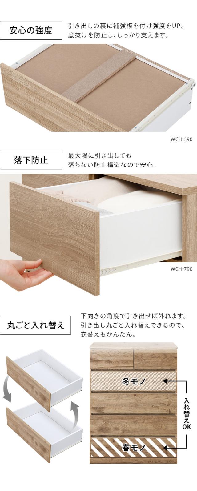 ウッドチェスト ハイタイプ WCH-790H チェスト 引き出し タンス たんす 箪笥 棚 5段 木製 木目調 洋服 衣類 収納 家具 インテリア おしゃれ アイリスオーヤマ 送料無料 新生活 インテリア
