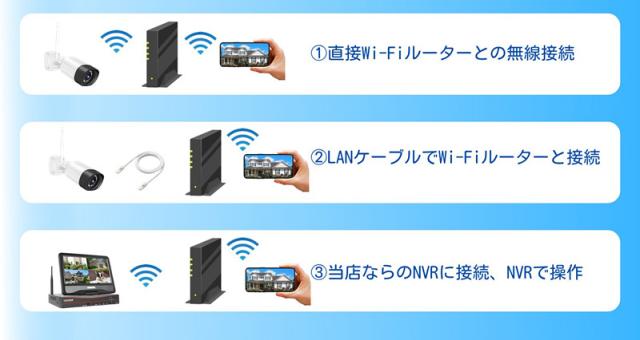 接続完了後はネットワーク接続により、どこでもカメラ映像の観覧、録画が出来ます。