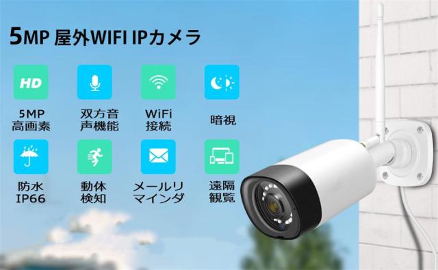 防犯カメラ 家庭用 屋外 屋内 ワイヤレス AI検知 wifi 防水防塵 双方向音声 遠隔監視 500画素 ネットワークカメラ 監視カメラ