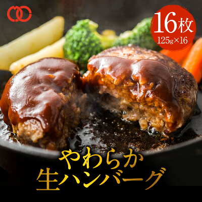ふんわり 肉汁 たっぷり ハンバーグ 牛 豚 合挽き 2000g 125g×16枚 冷凍 バーベキュー 生ハンバーグ パテ ギフト お中元 お歳暮 肉 お肉 御中元 お取り寄せ グルメ
