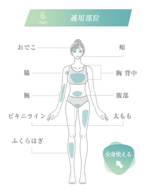 スキンケア用:肌のトリーメント。(シミ、小ジワ、ニキビ跡、赤みなどを改善すると同時に、コラーゲン成長を刺激し美肌効果をもたらします。)