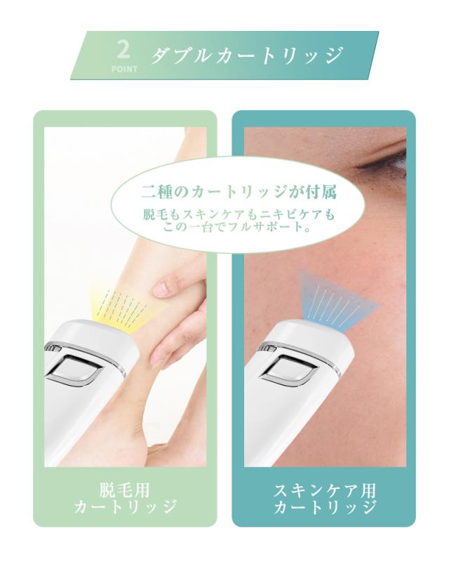 照射カートリッジは脱毛用とスキンケア用の2種類に分かれています。