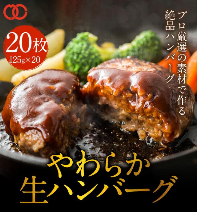 ふんわり 肉汁 たっぷり ハンバーグ 牛 豚 合挽き 2500g 125g×20枚 冷凍 バーベキュー 生ハンバーグ パテ ギフト お中元 お歳暮 肉 お肉 御中元 お取り寄せ グルメ