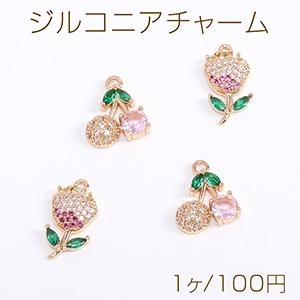 高品質ジルコニアチャーム さくらんぼチャーム バラチャーム ゴールド(1ヶ)