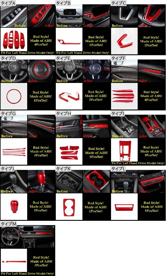 適用: MAZDA6 2019-2021 ウインドウ リフト ハンドル ボウル カップホルダー ステアリング ホイール ギア パネル カバー トリム レッド アクセサリー インテリア モデル J AL-OO-9678 AL