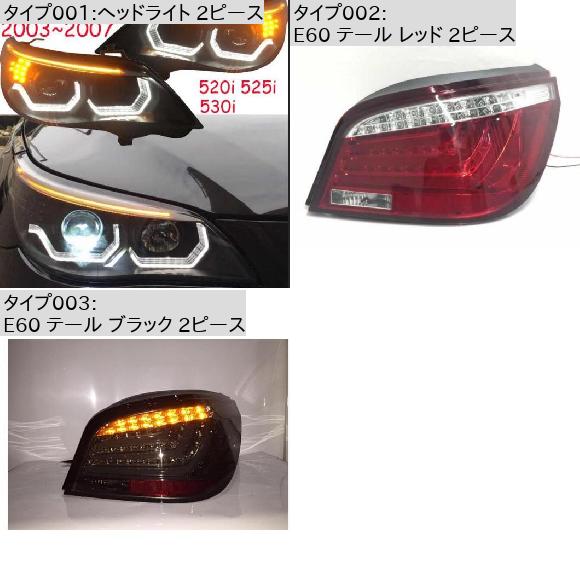 ・タイプ002:E60 テール レッド 2ピース×タイプC:BMW E60 2ピース 2003-2007 LED テールライト (こちらの販売ページです)
