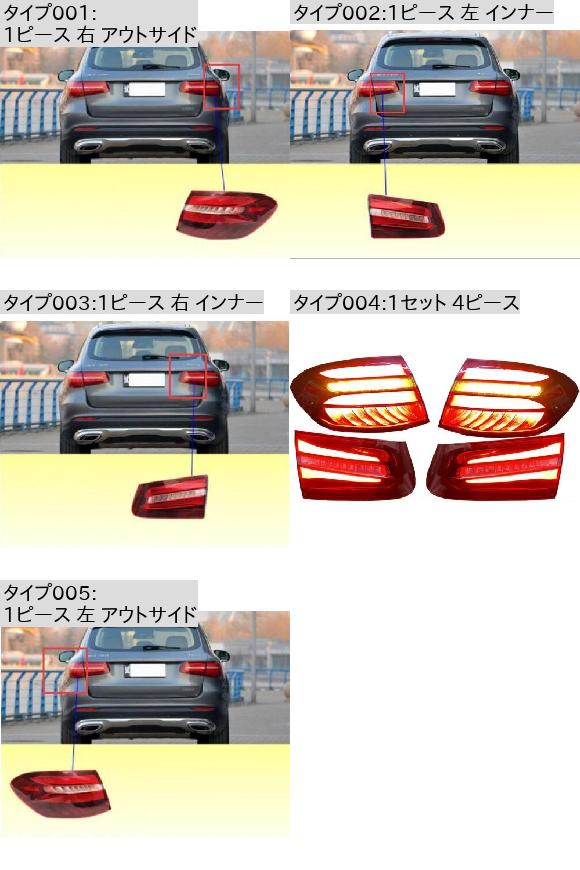 テールランプ バリエーション: タイプ001:1ピース 右 アウトサイド タイプ005:1ピース 左 バリエーション2: タイプA:メルセデス ベンツ W253 1ピース 2016-2019