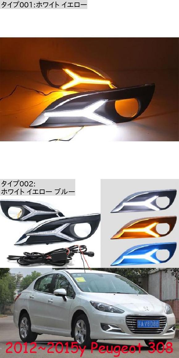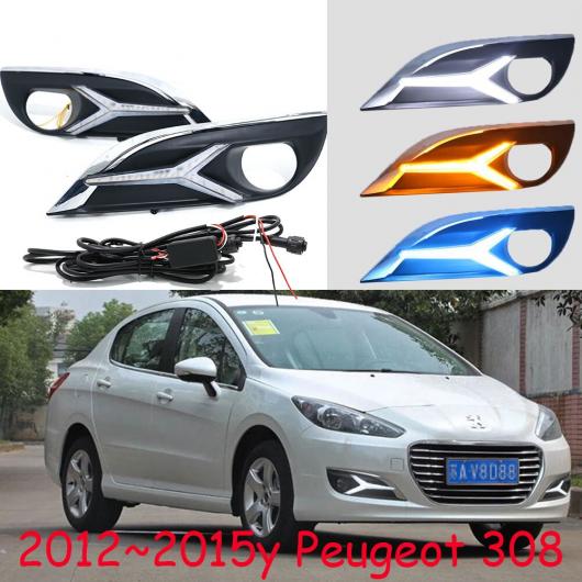 1セット ダイナミック バンパー ヘッドライト PEUGO 308 デイタイム ライト ソラリス 2012-2015 DRL LED ヘッドランプ フォグ ホワイト イエロー ブルー PEUGOT 308 2012-2015 AL-OO-0103 AL