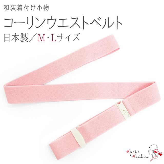 【3本までメール便発送OK】コーリン ウエストベルト 腰ひも きものベルト 日本製 Mサイズ Lサイズ 腰紐 ポリエステル ナイロン ゴム ピンク 和装小物 着付け小物 レディース 女性 着物 成人式 振袖 留袖 袴 浴衣 長襦袢