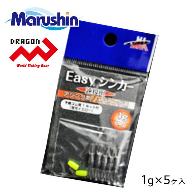 マルシン Easyシンカー 5ヶ入 1g 3B 仕掛け 割りビシ オモリ シンカー スプリットシンカー アシストシンカー 予備ゴム管付き 蛍光イエロー ソフトルアー ワームフィッシング ノッコミ ソルトウォーター アジング メバリング