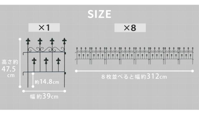 オールドシャトーフェンス スティックタイプ 8枚組 OC005ST-8P アイアン ガーデンフェンス ガーデニング 枠 柵 仕切り 目隠し 境目 クラシカル アンティーク トレリス