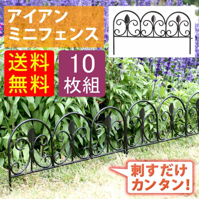 アイアンミニフェンス(リーフ) 3枚組 IPN-7238TG-3P ゲート 扉 アイアン ガーデンフェンス ガーデニング 枠 柵 仕切り 目隠し 境目 クラシカル