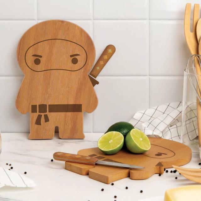 かわいいニンジャの形をしたカッティングボード&ナイフセットです。ちょっとした食材を切るのに丁度良いサイズ感で、サッとナイフを取り出せるので便利です。天然木の柔らかな雰囲気と、キッチンに置きたくなるかわいいデザインが魅力的です。
