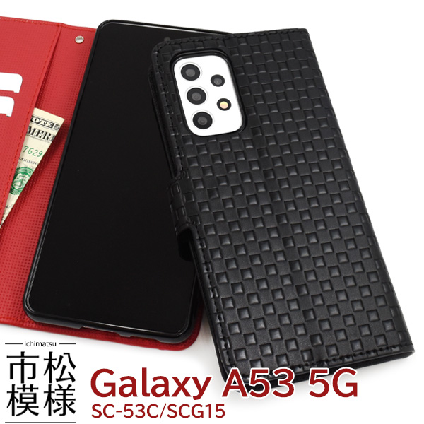 スマホケース Galaxy A53 5G SC-53C SCG15 UQ mobile 市松模様 スマホ 手帳型 ケース ワニ柄 保護 カバー ギャラクシー 定期入れ ポケット 手帳型ケース シンプル 液晶保護 赤 黒 スマートフォン スマートホン ストラップホール キーホルダー ストラップ