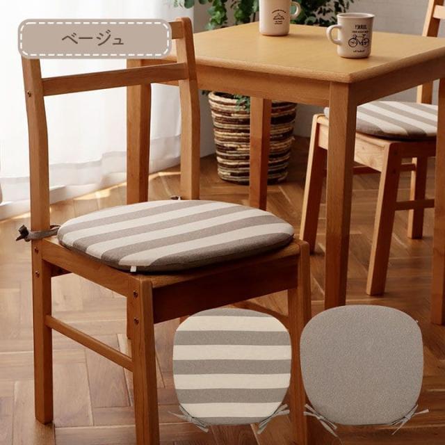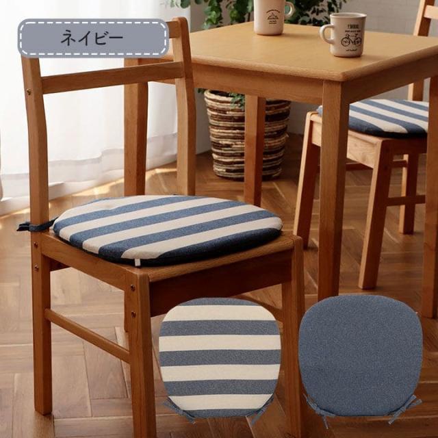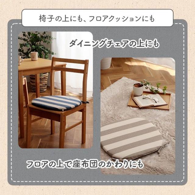 椅子用クッション 紐付き 厚手 クッション 椅子 43 45 丸型 座布団 洗える 車 ボーダー ラウンド 座る用 ダイニング コットン おしゃれ ふかふか チェア 床