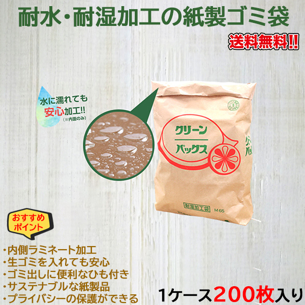 環境に配慮した耐水・耐湿加工の紙製ゴミ袋です