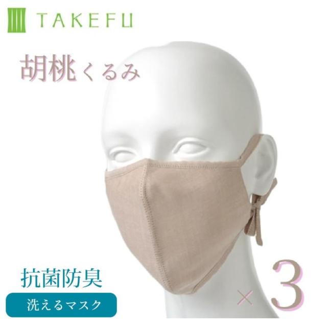 竹布 マスク TAKEFU うるおいマスク 布マスク 胡桃 くるみ ×3袋