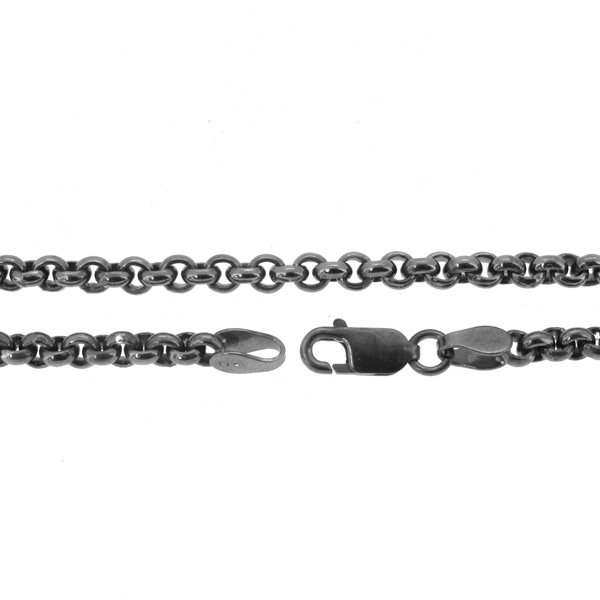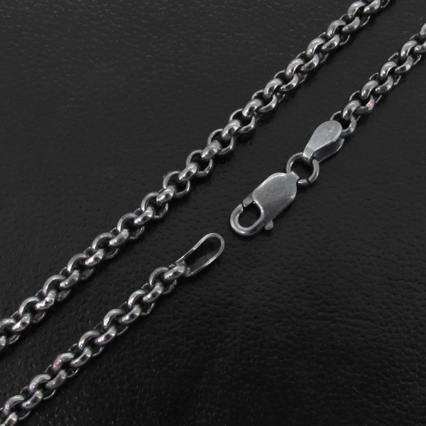 シルバーいぶしロールチェーン 幅約3.3mm 60cm/シルバー925 ネックレス チェーンのみ メンズ 燻し ブラック