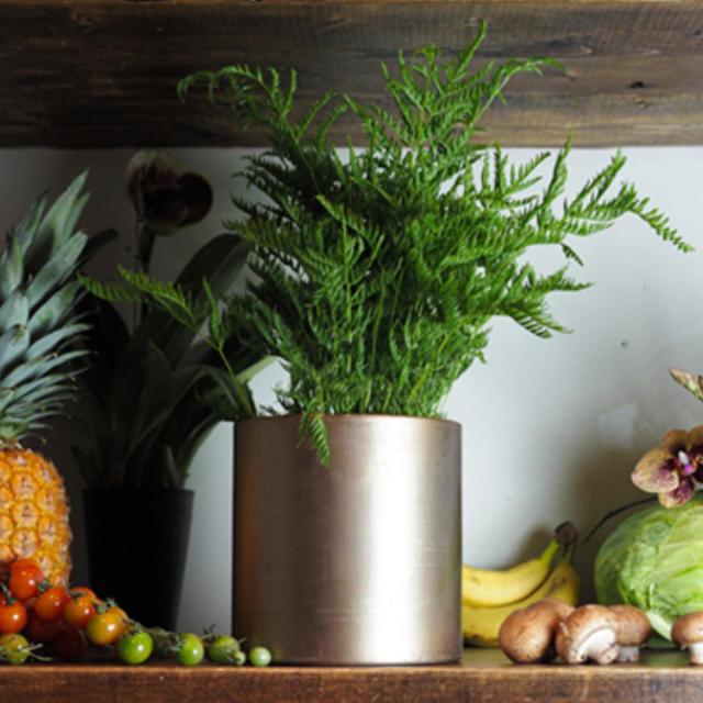 アイアン素材の直径17cmの円柱型フラワーベースです。ブリキ製品と異なって一枚の板金で作られているので水漏れの心配がなく、錆びにくいラッカー塗装が施されているので、耐久性に優れた花器です。