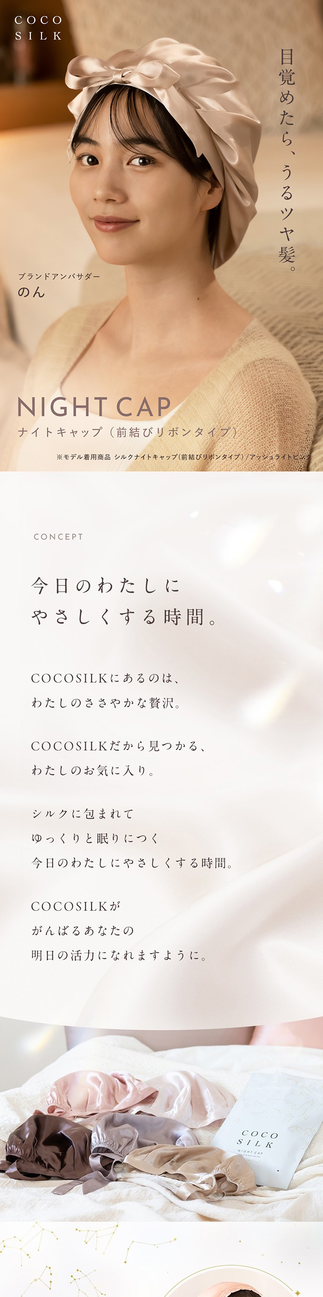 COCOSILK シルクナイトキャップ 前結びリボン タイプ