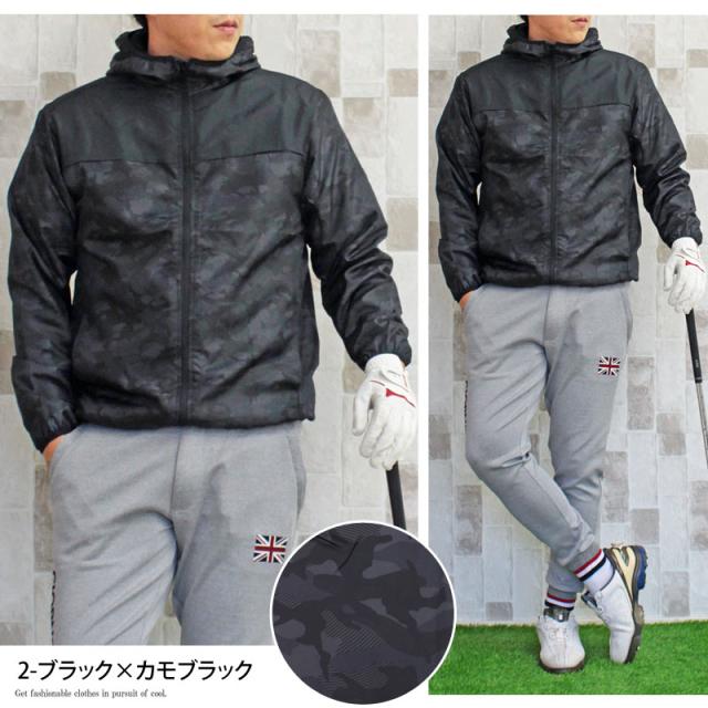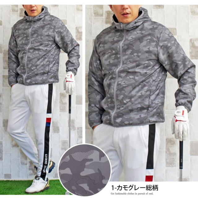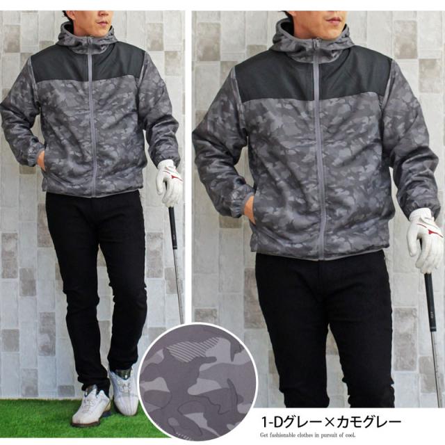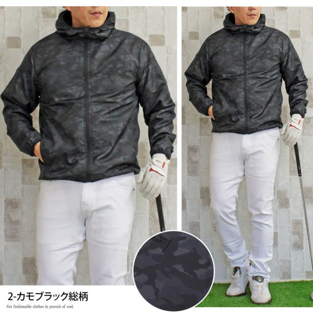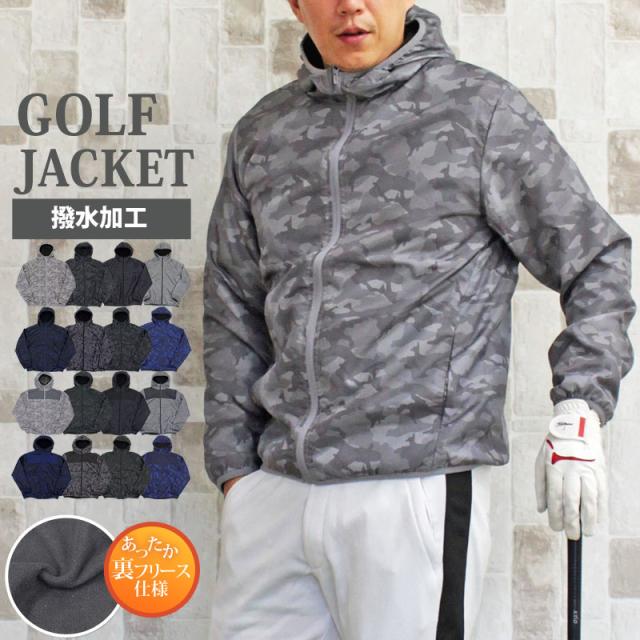 M~4L 秋 新作 ゴルフジャケット メンズ ゴルフウェア 裏起毛フリース 撥水加工 アウター ウィンドウジャケット ブルゾン おしゃれ 送料無料 パーカー フード フルジップアップ カモフラ 迷彩 総柄 スポーツウェア 暖かい 防寒 秋冬 大きいサイズ