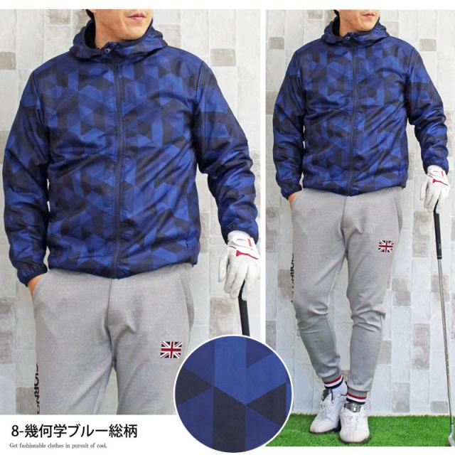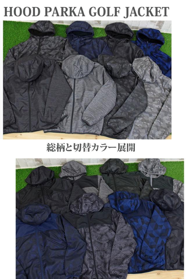 | 特徴 | 裏起毛フリース素材のフードパーカーゴルフジャケットです。 総柄と切替カラーの展開でカモフラ迷彩、カチオン、ボタニカル、 幾何学をそれぞれ採用したファッション性が楽しめるブルゾン。 軽くて動きやすく撥水加工も施されています。 裾と袖口は細いリブ仕様でストレッチがあり着用しやすいです。 アクティブでゴルフ以外のスポーツやアウトドアにも活用できます。 | |||||