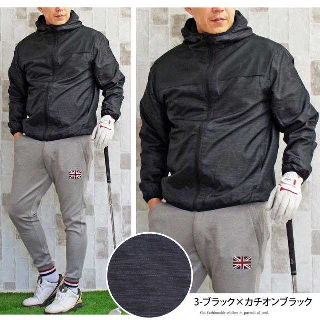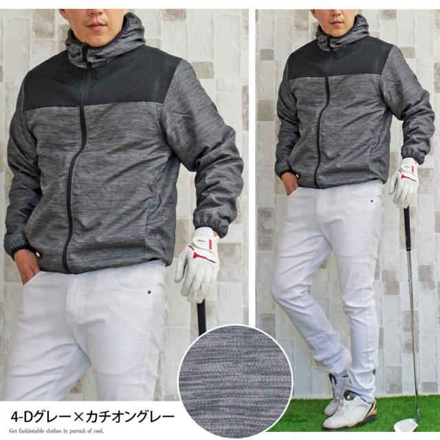 裏起毛フリース素材のフードパーカーゴルフジャケットです。