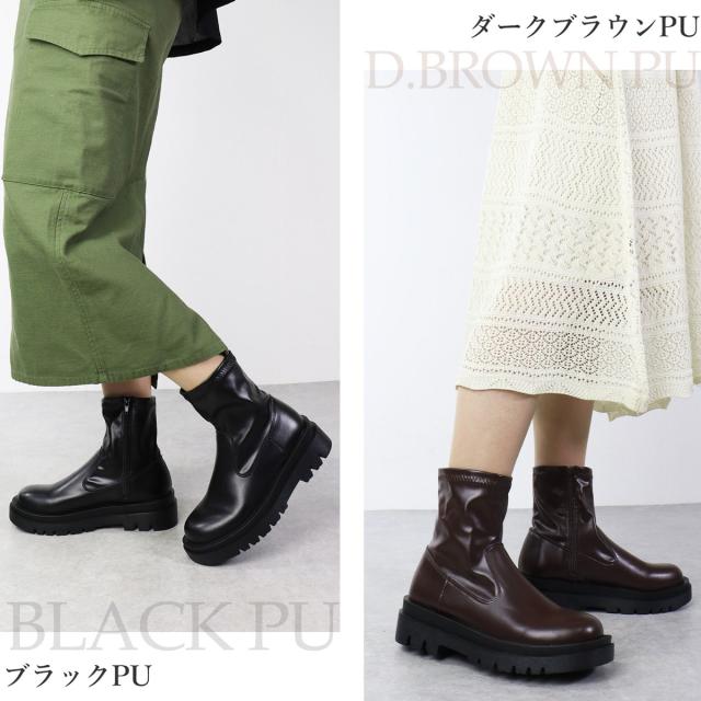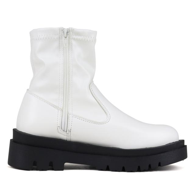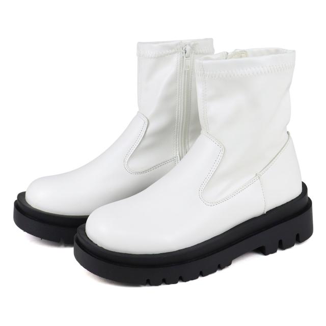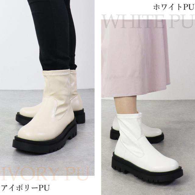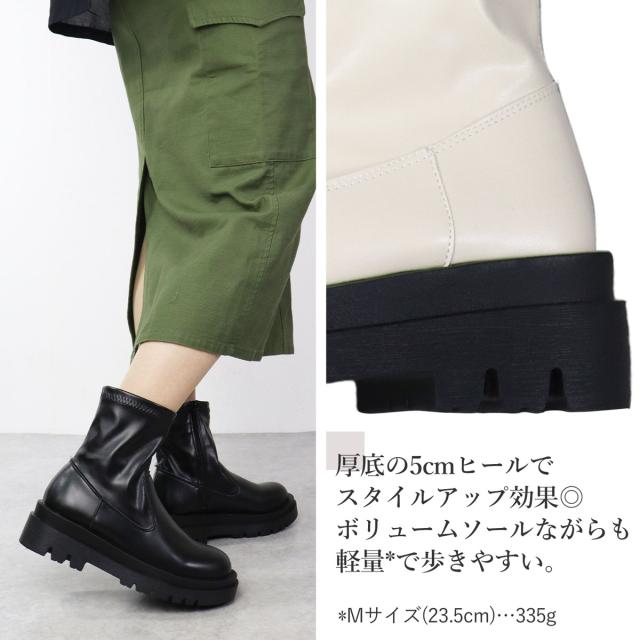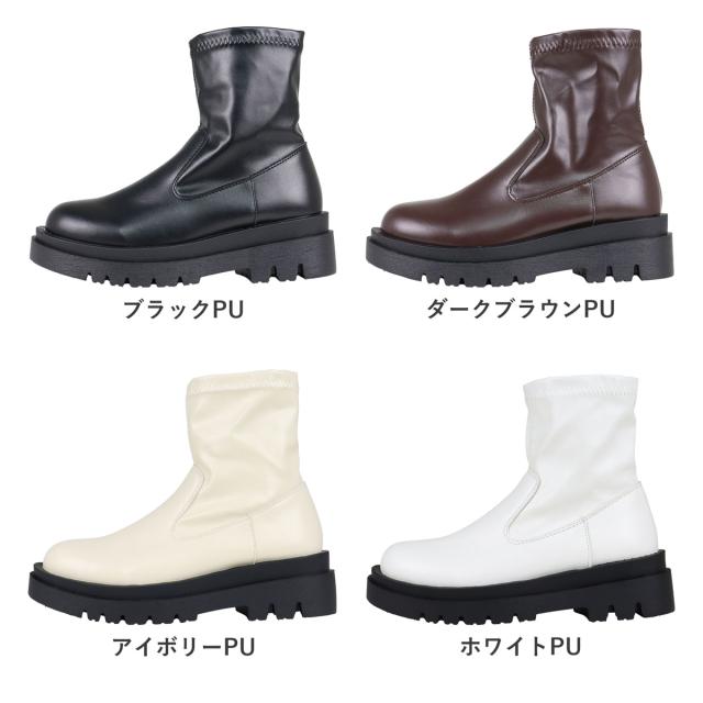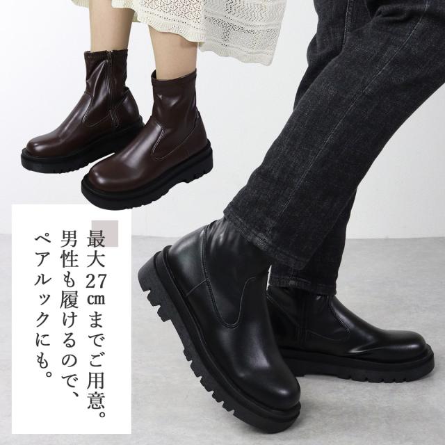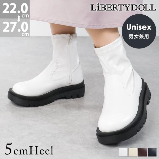 ブーツ レディース メンズ 厚底 5cmヒール ショートブーツ ユニセックス サイドジップ ストレッチ素材 履きやすい 22.0-27.0cm 黒 ブラック No.9087 リバティードール ショートブーツ 歩きやすい スタイルアップ おしゃれ 秋 冬 黒 ブラック 白 ホワイト
