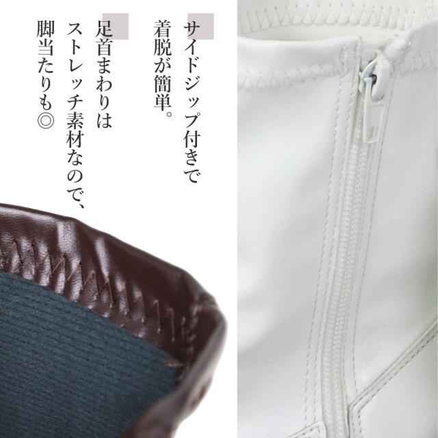 ・足首周りはストレッチ素材で脚当たりが良く、サイドジップ付きなのでスムーズに着脱できます。
