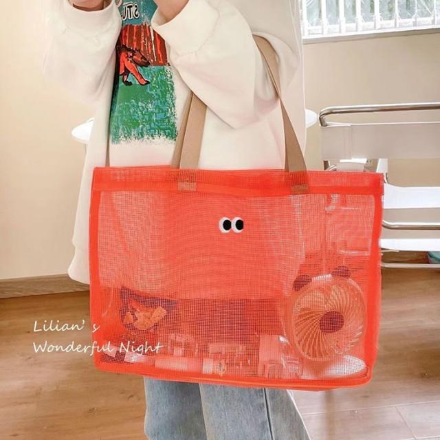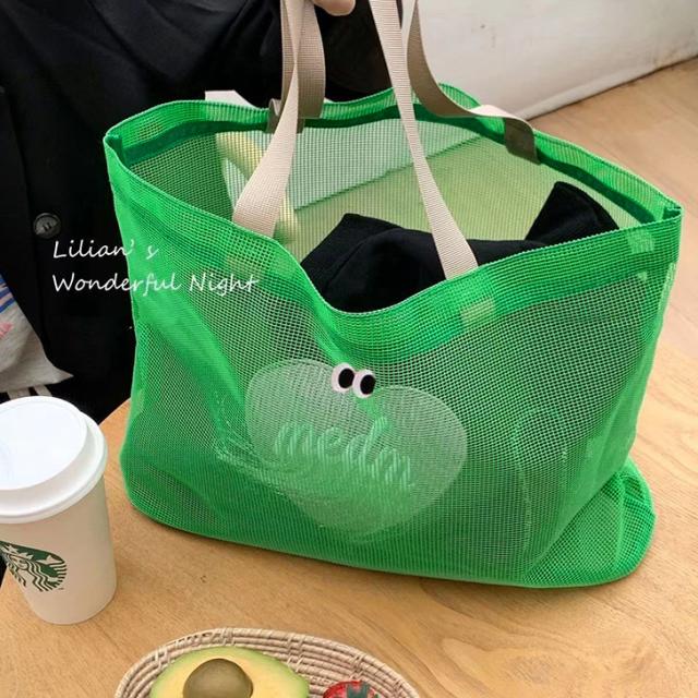 新作 目玉デザイン メッシュ トートバッグ レディース メンズ メッシュトート メッシュバッグ ネットバッグ スクエア 編み 軽量 A4 おしゃれ かわいい 韓国 雑貨 夏 海 ビーチ プール 女の子 男の子 キッズ