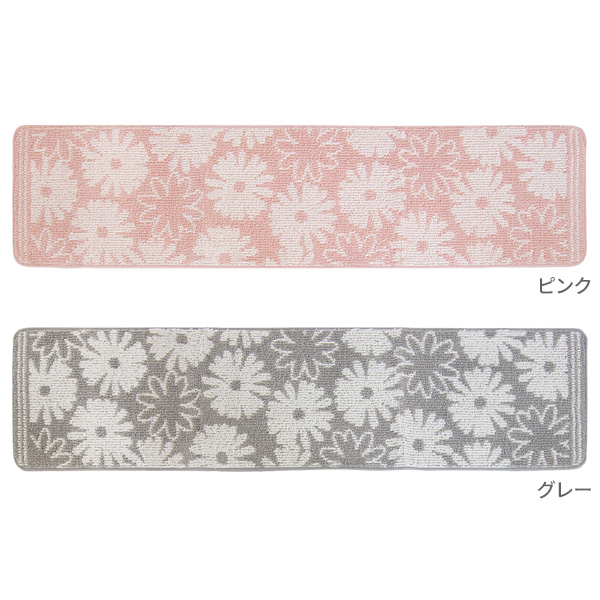 キッチンマット シュクレ 45×180cm ピンク / グレー | キッチンマット キッチン 台所 マット カーペット 絨毯 180cm 花 フラワー 柄