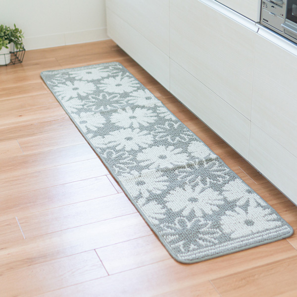 柔らかいループが心地いい、花柄で優しい色合いのキッチンマット。