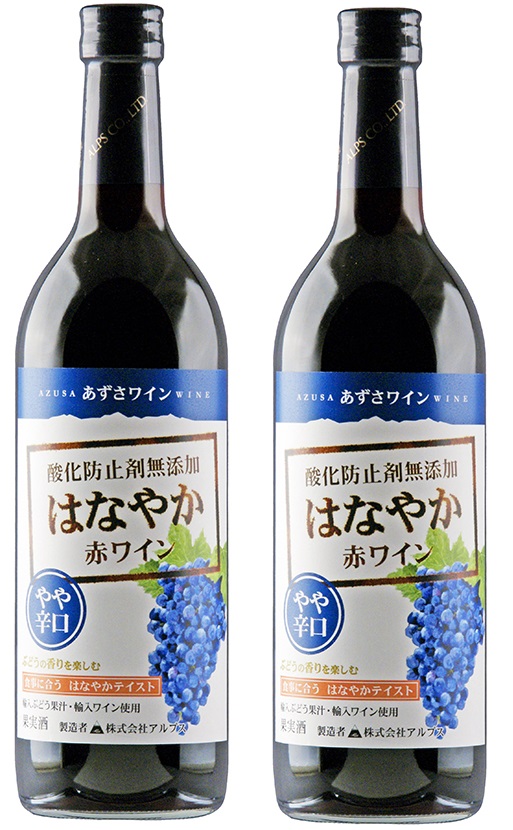 長野県 アルプス あずさワイン酸化防止剤無添加 はなやか赤ワイン やや辛口 720ml×2本北海道・沖縄県・東北・四国・九州地方は必ず送料がかかります