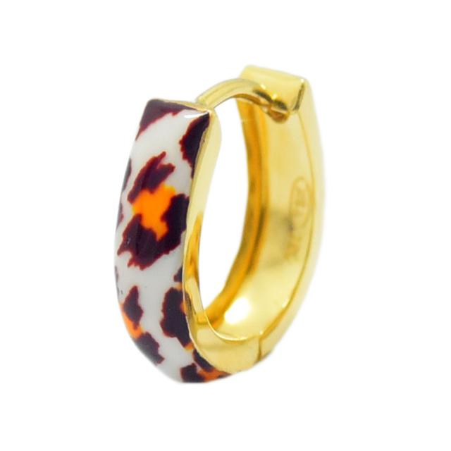 表面にエナメル素材で模様が描かれたシンプルなデザインピアスです。留め金具はワンタッチで留めやすく落ちにくい中折れ開閉式です。