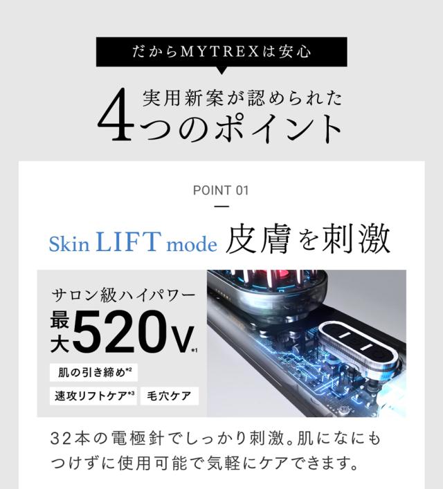 エステサロン級の最大520Vのパワーで肌にハリを与え※1効果的なリフトケア※2へ導きます。