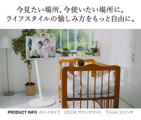 キャスター付きで見たい場所、使いたい場所に動かすことができます。