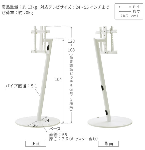 本体:幅55x奥行55x高さ108〜128cm
