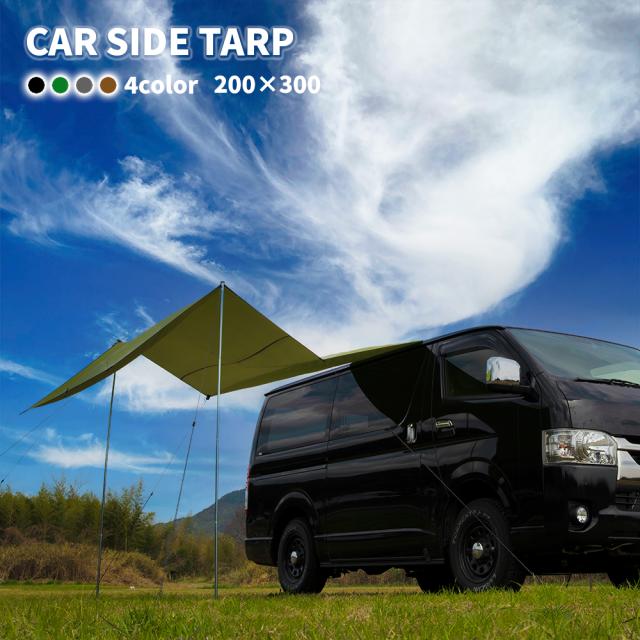 カーサイドタープ タープ テント 車用 日よけカーテント 設営簡単 2〜4人用 キャンプ テント アウトドア 公園 登山 車中泊 日よけと防雨 車のトラベルテントトランクテント SUVテント 車中泊テント カーサイドテント