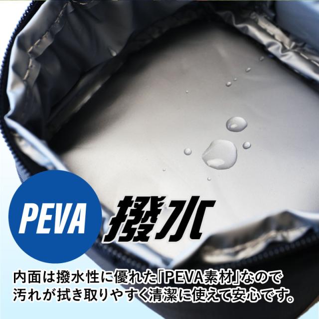 | 素材 | 表地:ポリエステル生地 内側:PEVAシート 中芯:ウレタン ベルト:ポリエステル ネームタグ:アクリル |