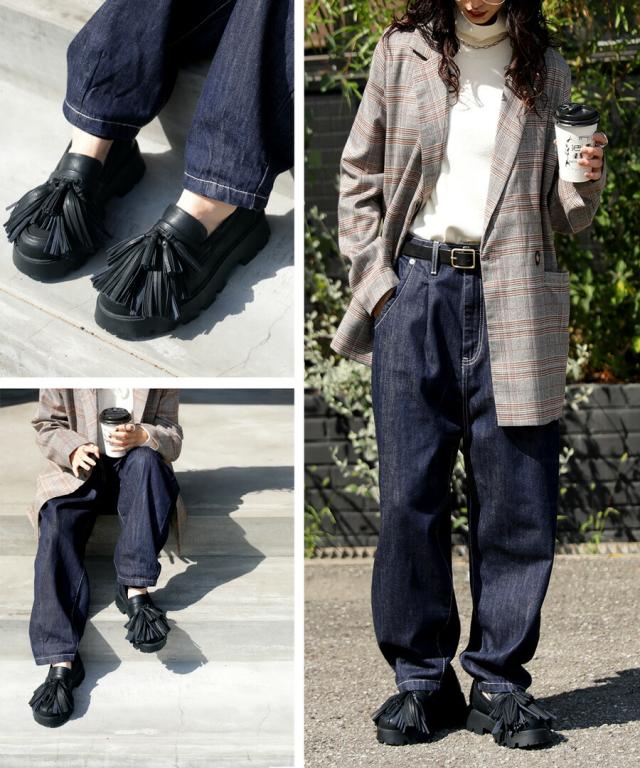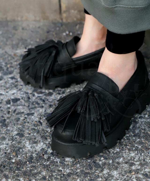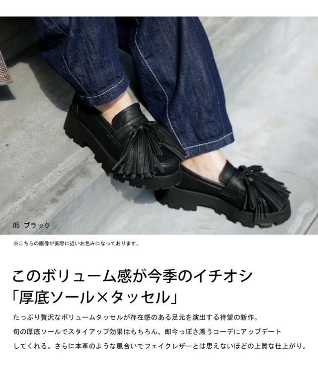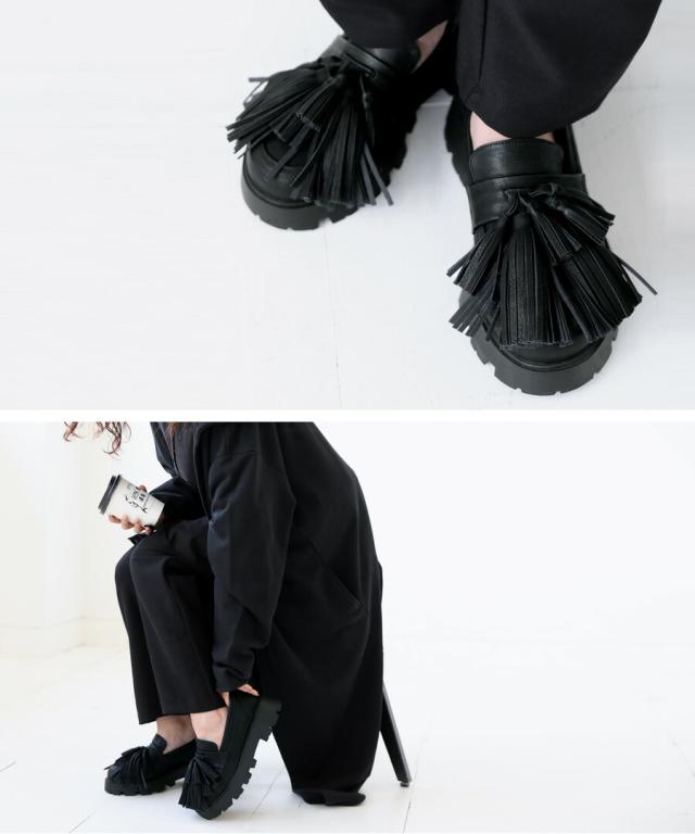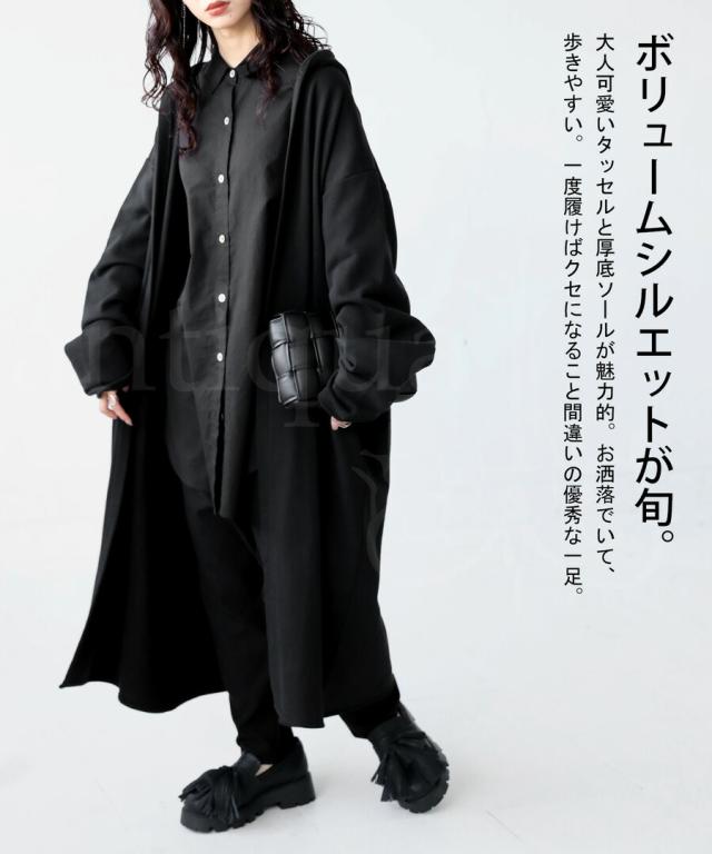ap-00037 痛くない 歩きやすい 厚底 タッセル ボリューム 軽い 軽量 合皮 モード 本革風 マット シボ感 高級感 フラット フラットシューズ ラウンド シンプル きれいめ 上品