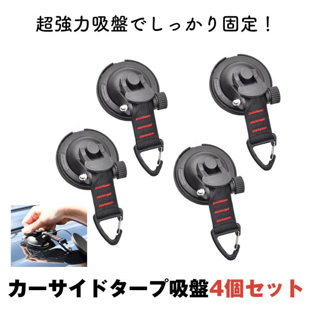 カーサイドタープ 吸盤 4個セット フック フック付き 強力吸盤 タープ 車 テント 固定 キャンプギア キャンプ ソロキャンプ 車中泊 アウトドア タープフック アンカー 連結