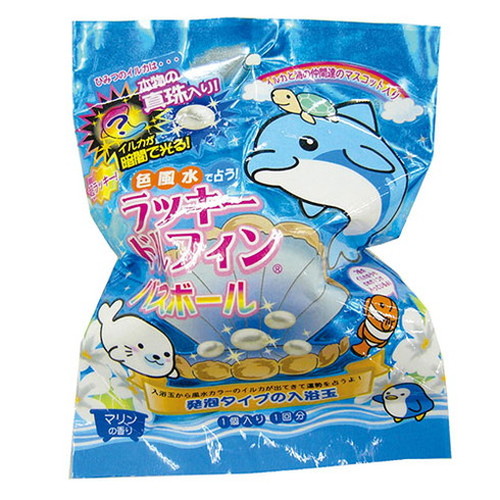 発砲タイプの入浴料から、風水カラーのイルカのマスコットがでてきて、運勢を占います。