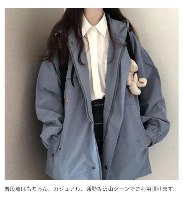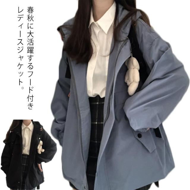 マウンテンパーカー レディース ジャケット 長袖 フードパーカー ゆったり アウター 春秋 ミディアム コート ジップアップ 羽織 大きいサイズ 体型カバー オシャレ 通学 アウトドア ギフト