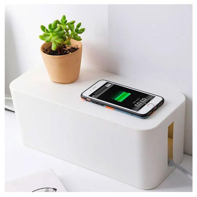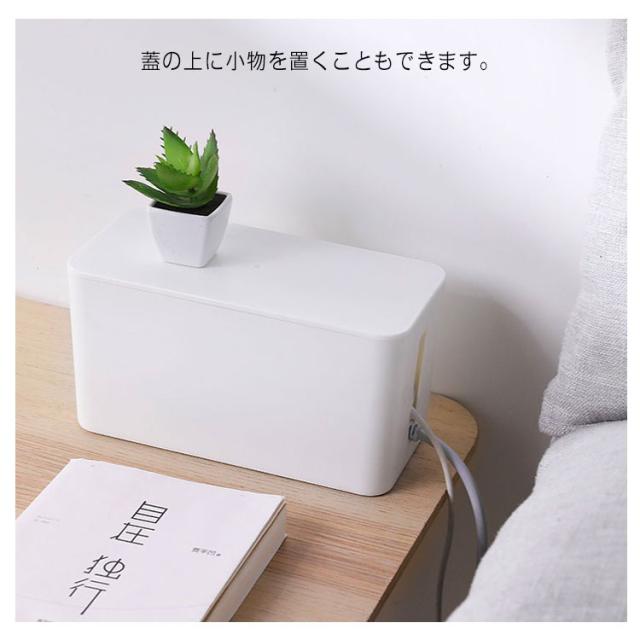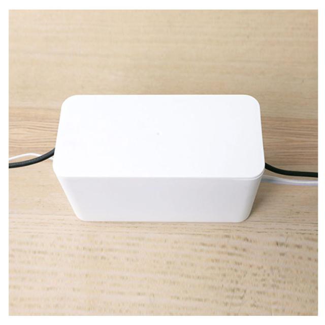 | ごちゃつきがちな配線や電源タップを中に入れるだけ。 汚れなども簡単に拭き取りでき、洗うことも可能です。 電源周りを埃から守ったり、お子様やペットのイタズラ対策など、安全面からもおすすめです。 インテリアの雰囲気を損なわないシンプルでスタイリッシュデザインです。 熱がこもりにくいように設計されています。 蓋の上に小物を置くこともできます。 | |