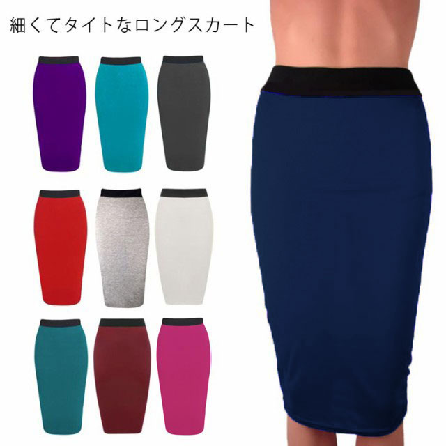 全12色×6サイズ タイトスカート ロング ロングスカート タイト マキシ丈スカート マキシ丈 スカート レディース ウエストゴム 細身 細い カジュアル シンプル スリム スタイルアップ きれい
