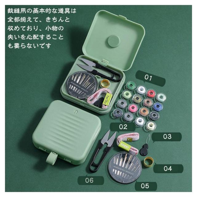 | サイズについての説明 | 12.3*11*3.3cm/145g セット内容:糸*16、糸通し、はさみ、メジャー、ぬい針ケース、指ぬき ※サイズ表の実寸法は商品によって1-2cm程度の誤差がある場合がございます。 |