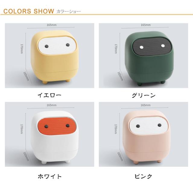 | ワンプッシュで開くフタ付き可愛いゴミ箱 ワンプッシュで開閉し手軽にゴミを入れられます。 お菓子の袋や、枝豆の皮、フルーツの皮などサッと捨てることができるので、片付けも楽ちん♪ 底部は滑り止め加工を施して安定感も優れる! 可愛いデザインは子供部屋に最適!置物としてインテリアとの相性も抜群です。 | |