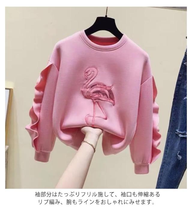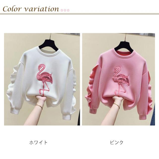 110−160cm!女の子 パーカー 子供服 刺繍パーカー フリル袖 ラウンドネック トップス トレーナー 刺繍 可愛い 送料無料