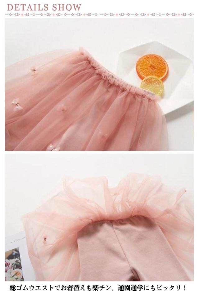 送料無料 子供服 チュール スカッツ ボトムス 女の子 チュチュ 10分丈 キッズ 春 秋 おしゃれ レギンス付きスカート ジュニア 100 110 120 130 140cm ガールズ かわいい ふんわり 着まわし ヘビロテ こども服 子ども服
